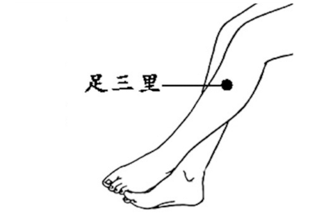 足三里:位于小腿前外侧,膝盖下缘约4横指处。用大拇指按压此穴3~5分钟,有调理脾胃和肠消滞之效。